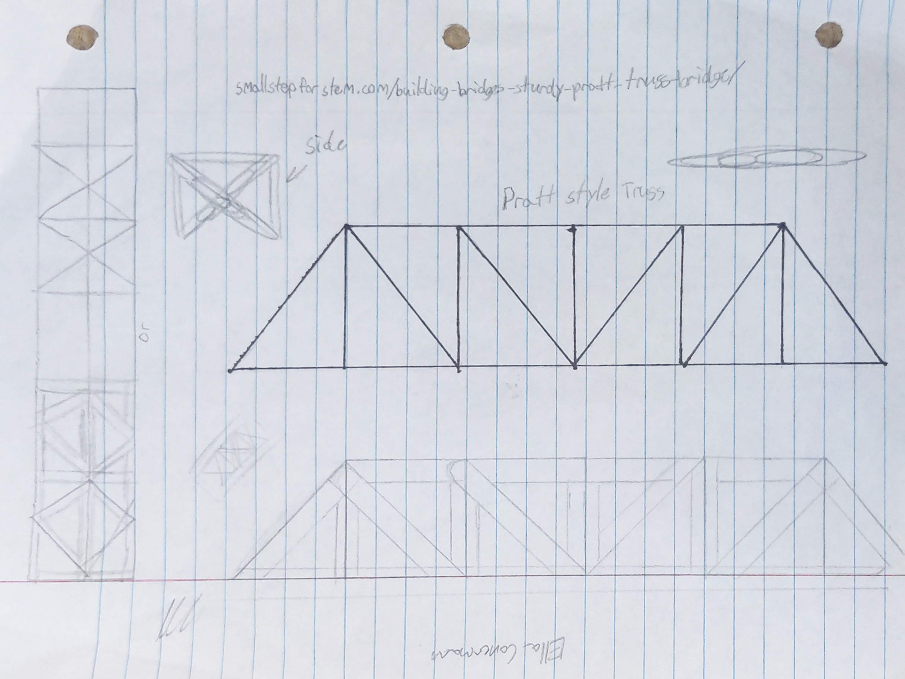 Below, you can see our rough sketch of our bridge design, with the width of each piece shown beside it.