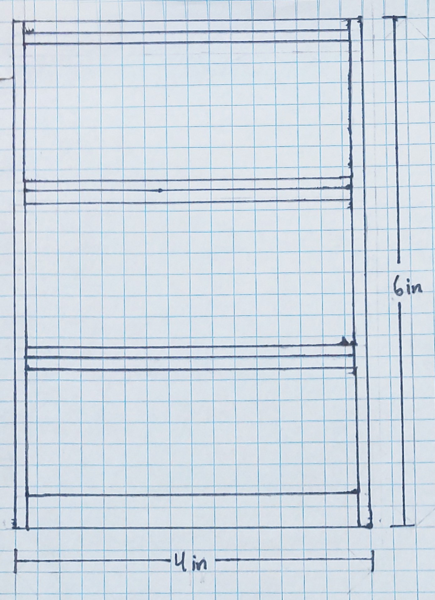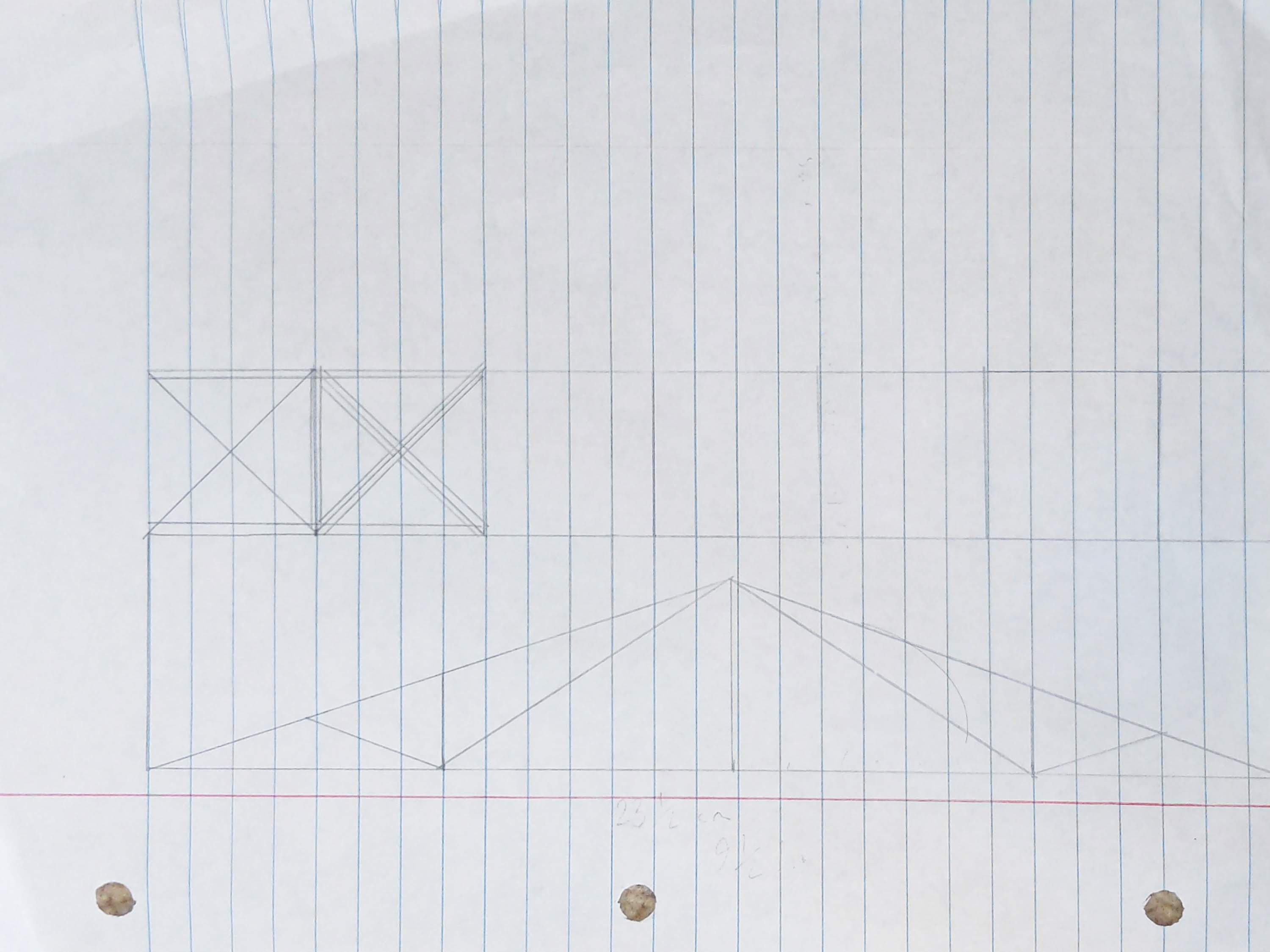 Below, you can see our rough sketch of our bridge design, with the width of each piece shown beside it.